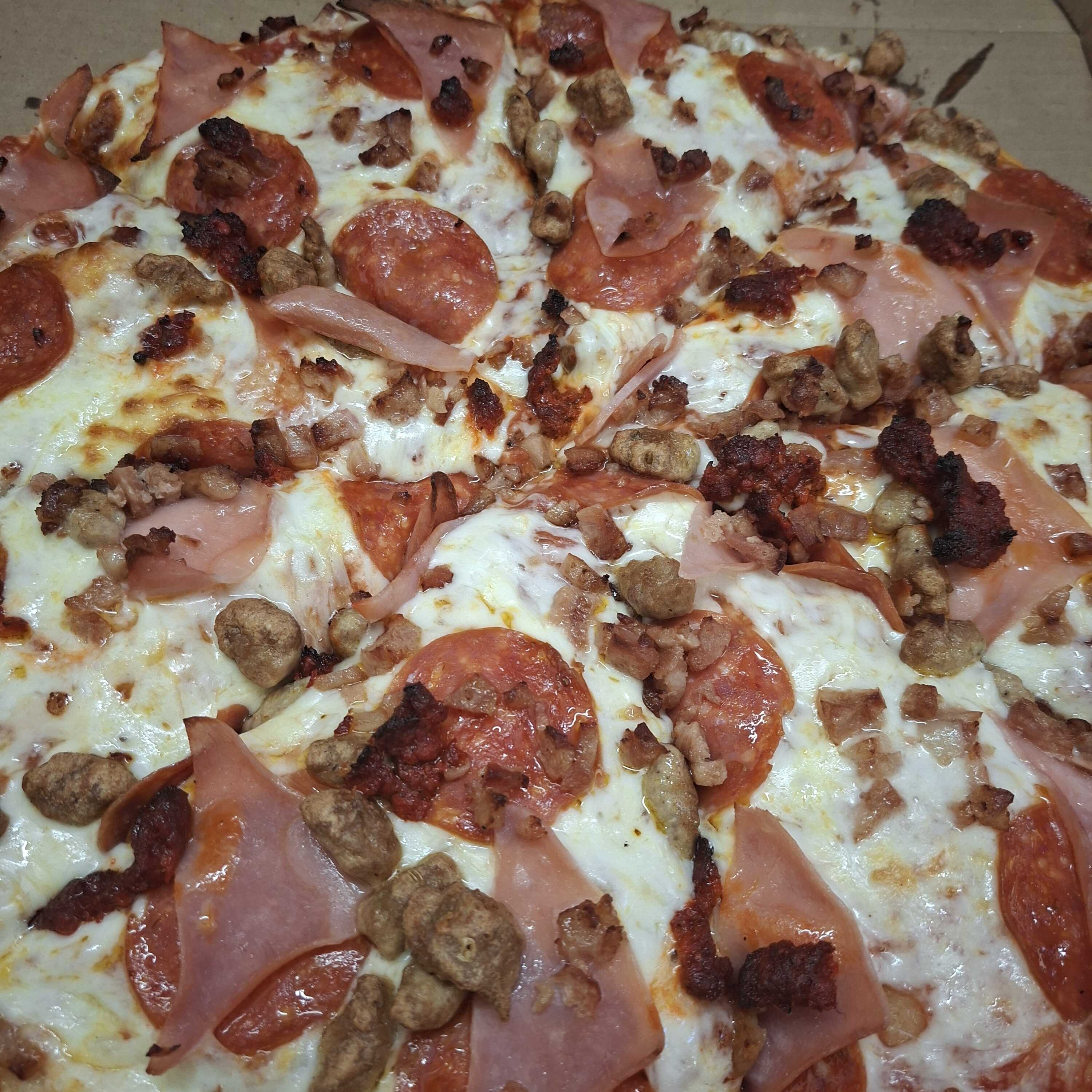 (Peperoni, jamón, salchicha Italiana, chorizo y tocino)