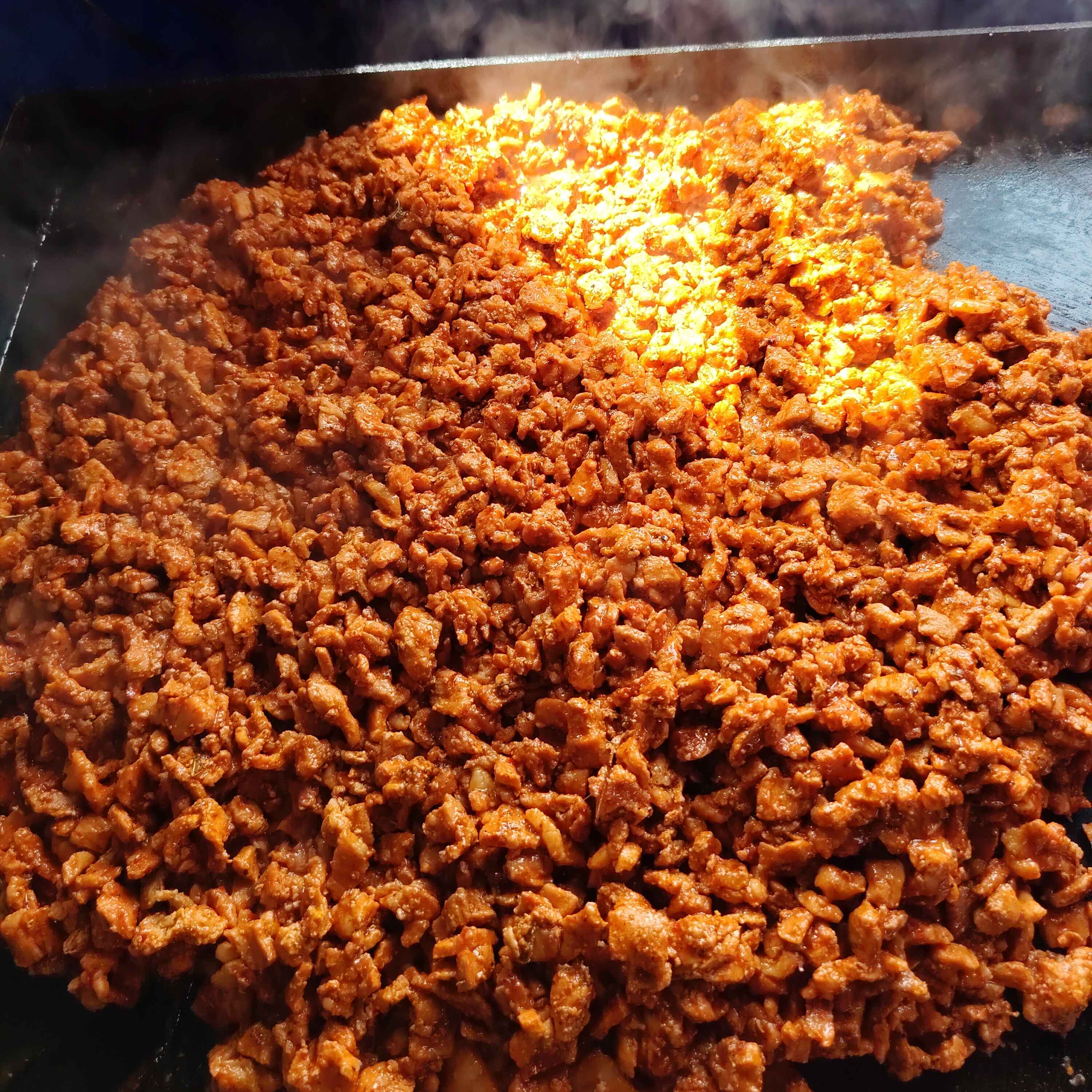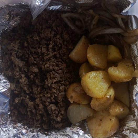 Medio kilo de carne al pastor sazonada, acompañado de papas al vapor con mantequilla, frijoles y tortillas.