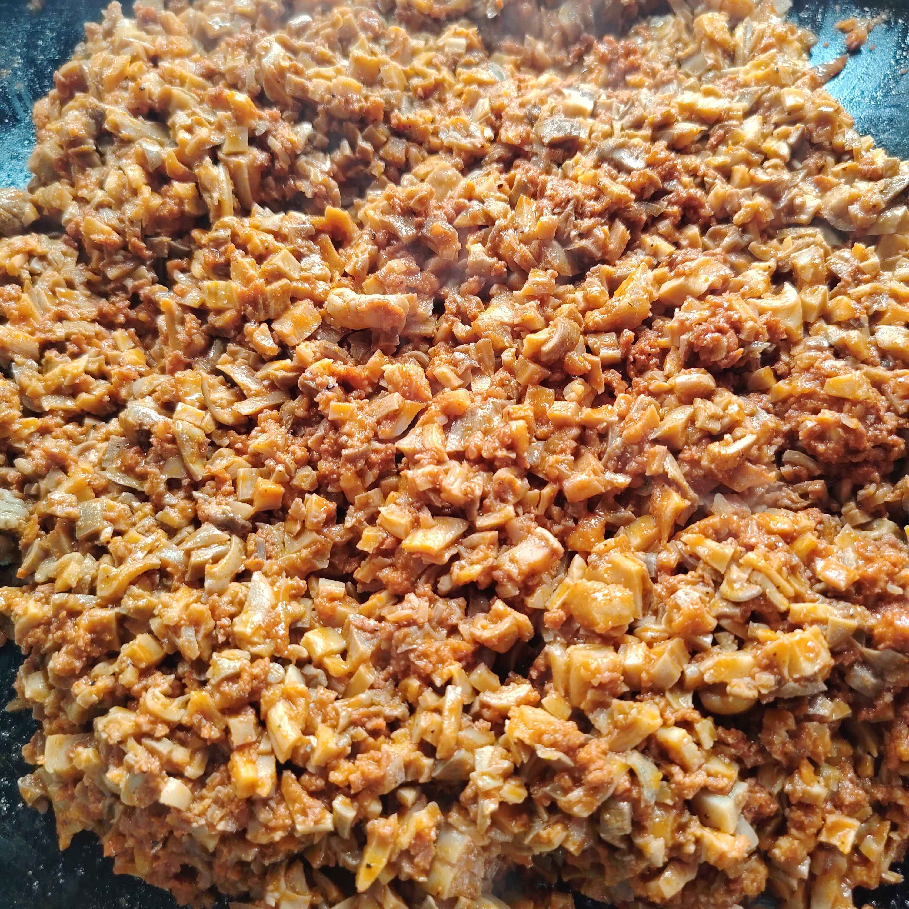 Medio kilo de buche con chorizo sazonado, acompañado de papas al vapor con mantequilla, frijoles y tortillas.