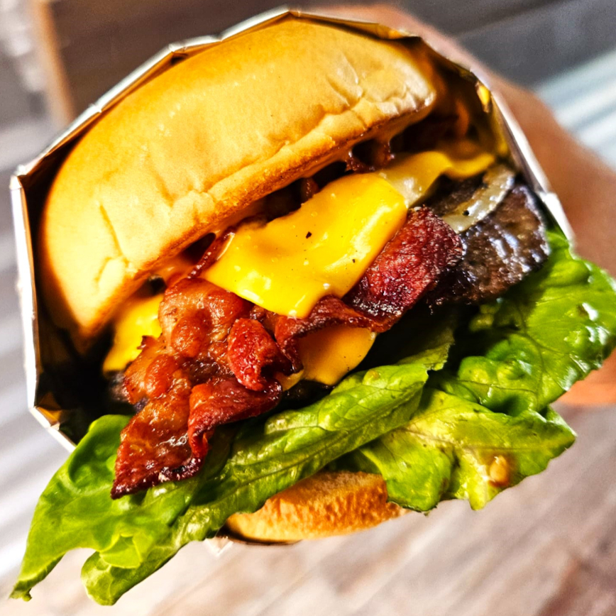 Hamburguesa tradicional con un toque de tocino y doble queso.