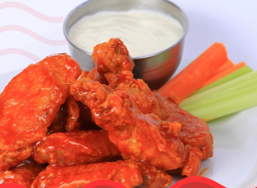 Medio kilo de alitas bañadas en tu salsa favorita