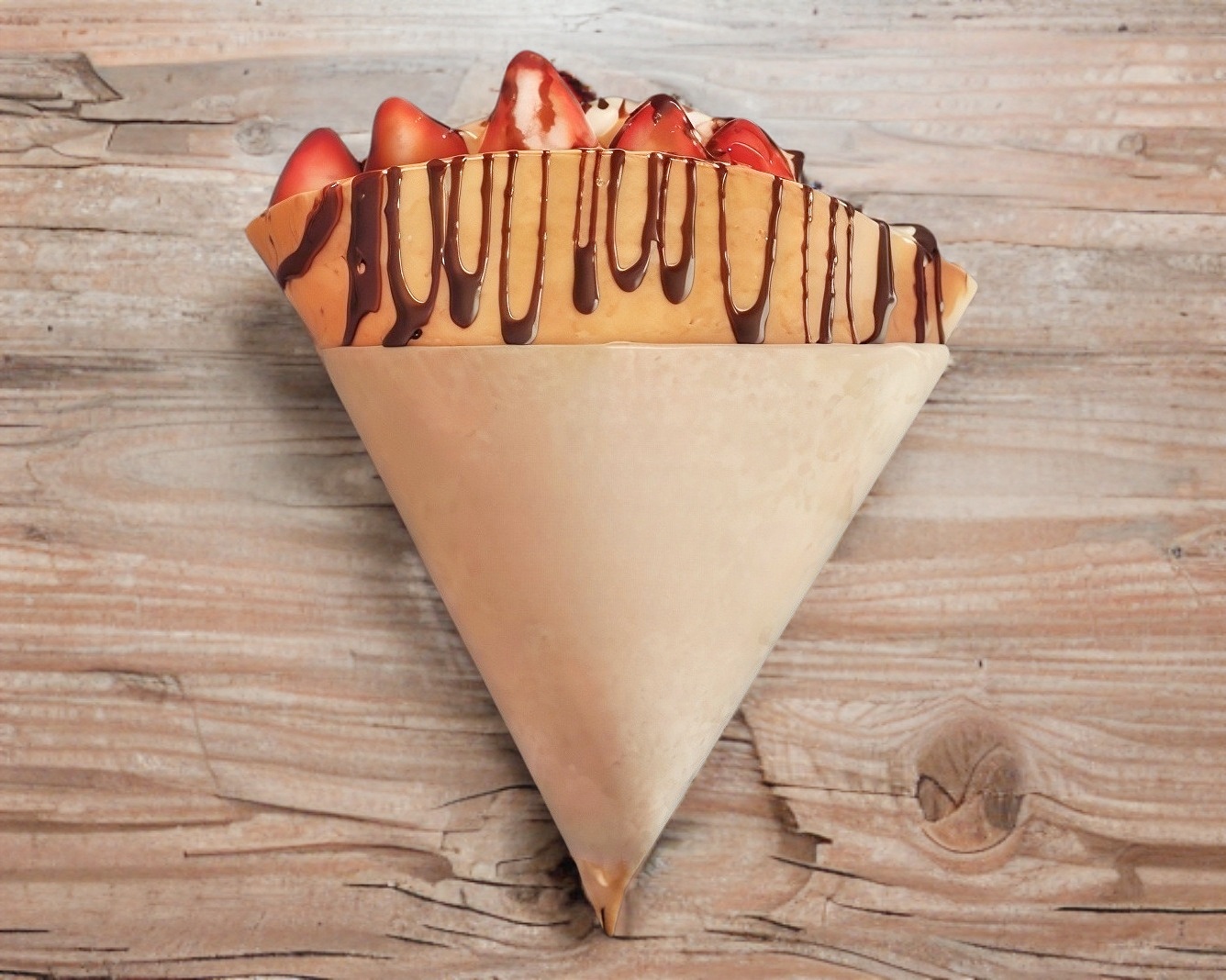 Deliciosas crepas con el aderezo untable de su elección (Nutella, Lechera, Mermelada de fresa, Queso crema) con la fruta a elegir (Fresa, Frutas Rojos, Plátano y Mango) con chocolate Hershey