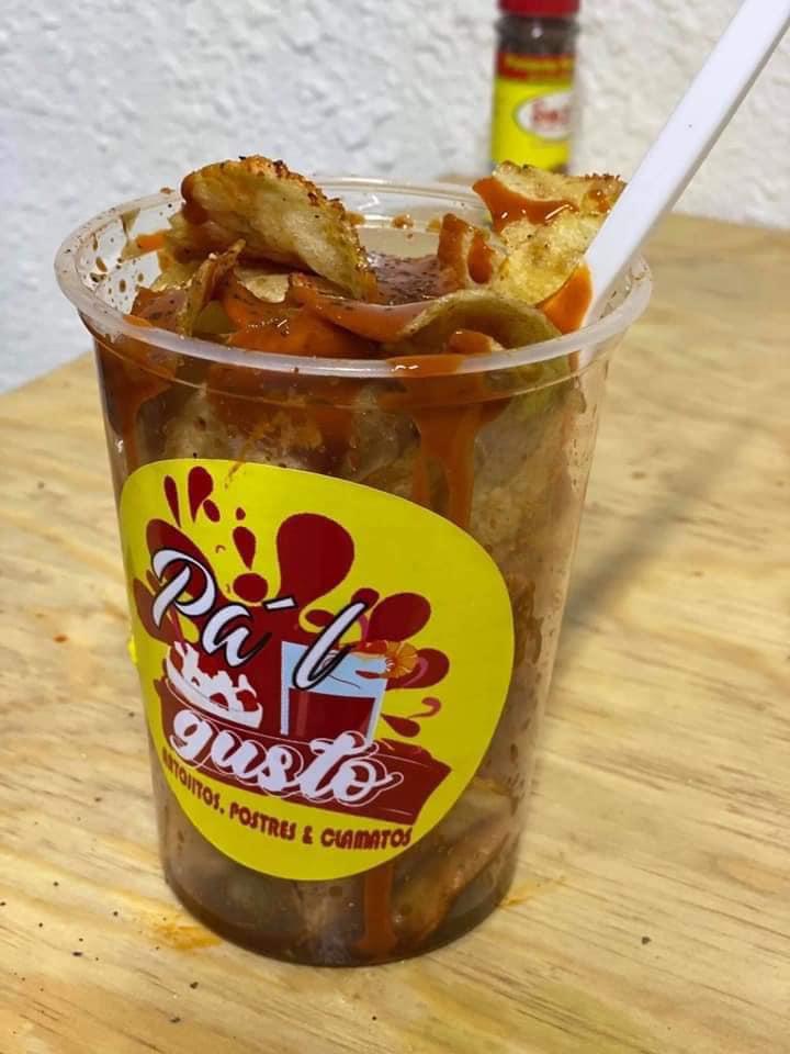 Papas caseras preparadas con pepino,jícama, skwincles, cacahuates, chamoy.