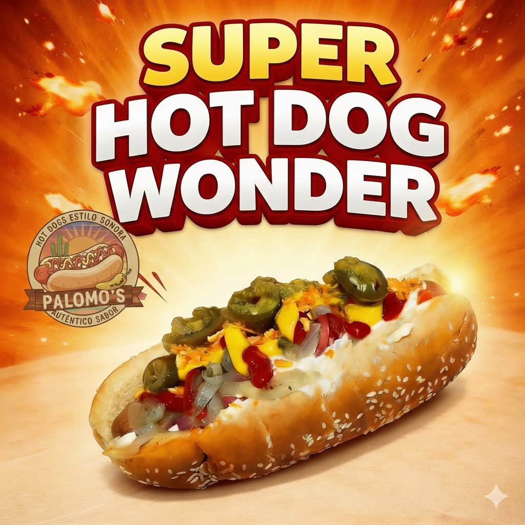 Mega salchicha de pavo, envuelta en tocino en pan wonder.
