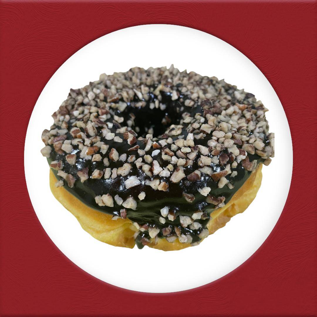 dona esponjosa cubierta de chocolate con nuez encima