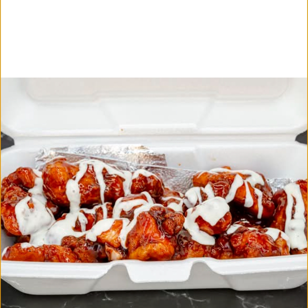 310 gr de boneless de pechuga de pollo empanizada frutos en aceite vegetal bañados en un aderezo a elegir