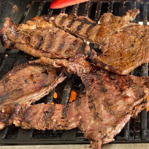 300gr Sirloin, 300gr Papas Adictivas,Tortillas, 2Salsas, catsup y Soda.