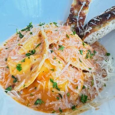Descubre la exquisitez de nuestros ravioles hechos a mano, rellenos con una deliciosa mezcla de queso parmesano, mozzarella y mascarpone, realzada con un toque fresco de albahaca. Cada ravioli esta hecho a mano con el mayor cariño al platillo, echos a base de una pasta suave y delicada que envuelve un relleno cremoso y lleno de sabor. La fusión de quesos aporta una experiencia deliciosa!