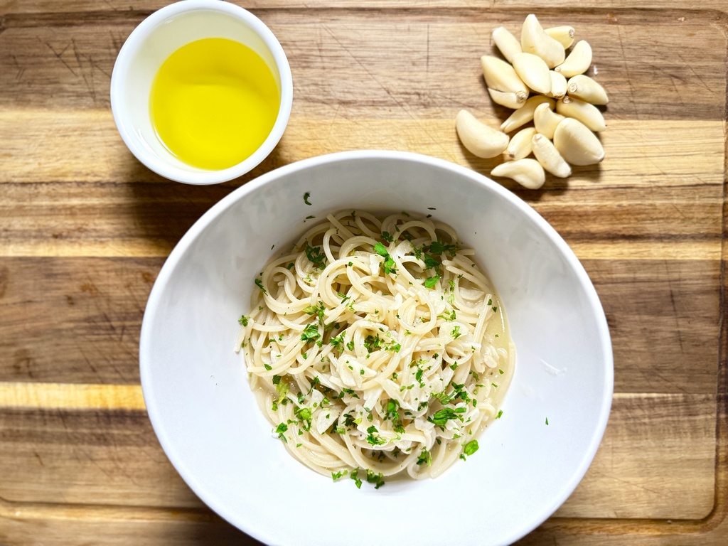 Spaghetti en una delicada emulsión de aceite de oliva y ajo, un clásico sencillo pero irresistible, que conquista paladares por su autenticidad y se mantiene como uno de los favoritos de siempre. Incluye Pan de Ajo