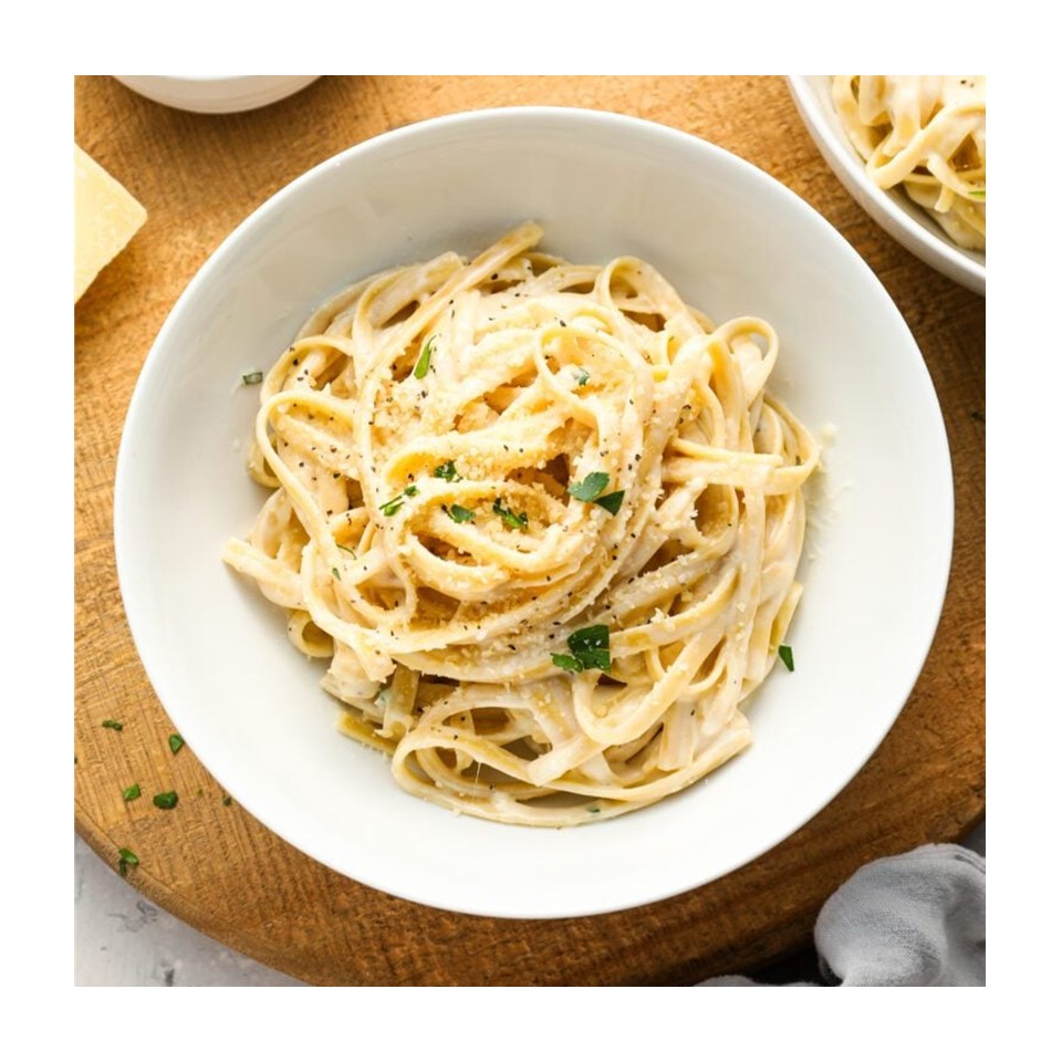 Fettuccine artesanal elaborado en casa, acompañado de una cremosa salsa Alfredo, reconfortante y lleno de sabor que deleita a cada comensal. Incluye Pan de Ajo