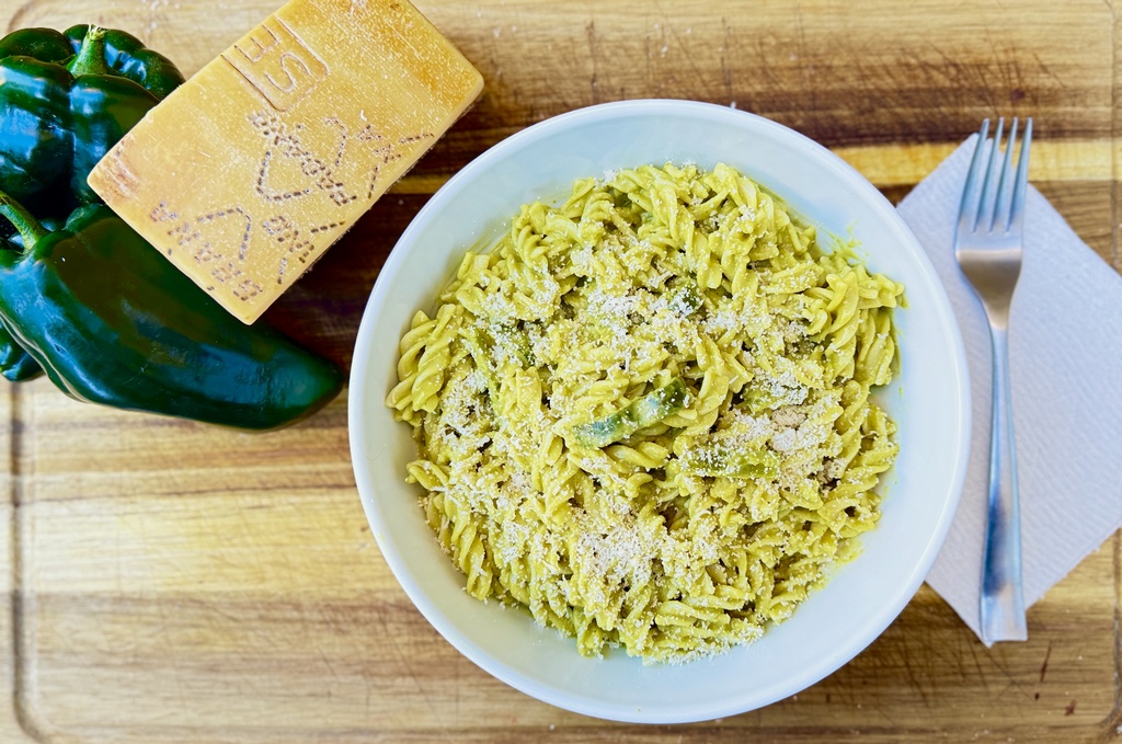 Fusilli de sémola bañado en una cremosa salsa de chile poblano asado, donde su sabor ahumado y profundo se combina con un toque de queso Grana Padano, creando una experiencia diferente. Incluye Pan de Ajo