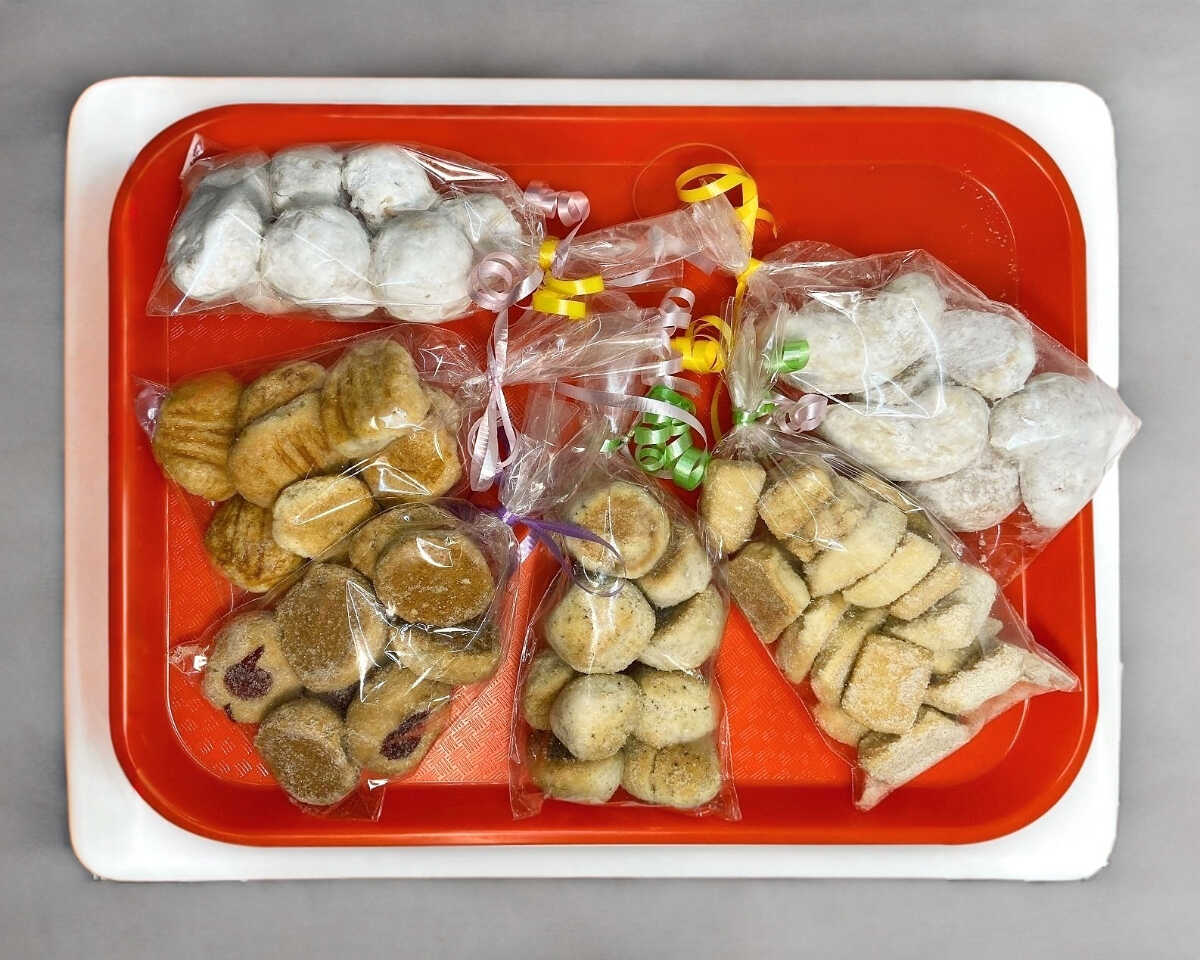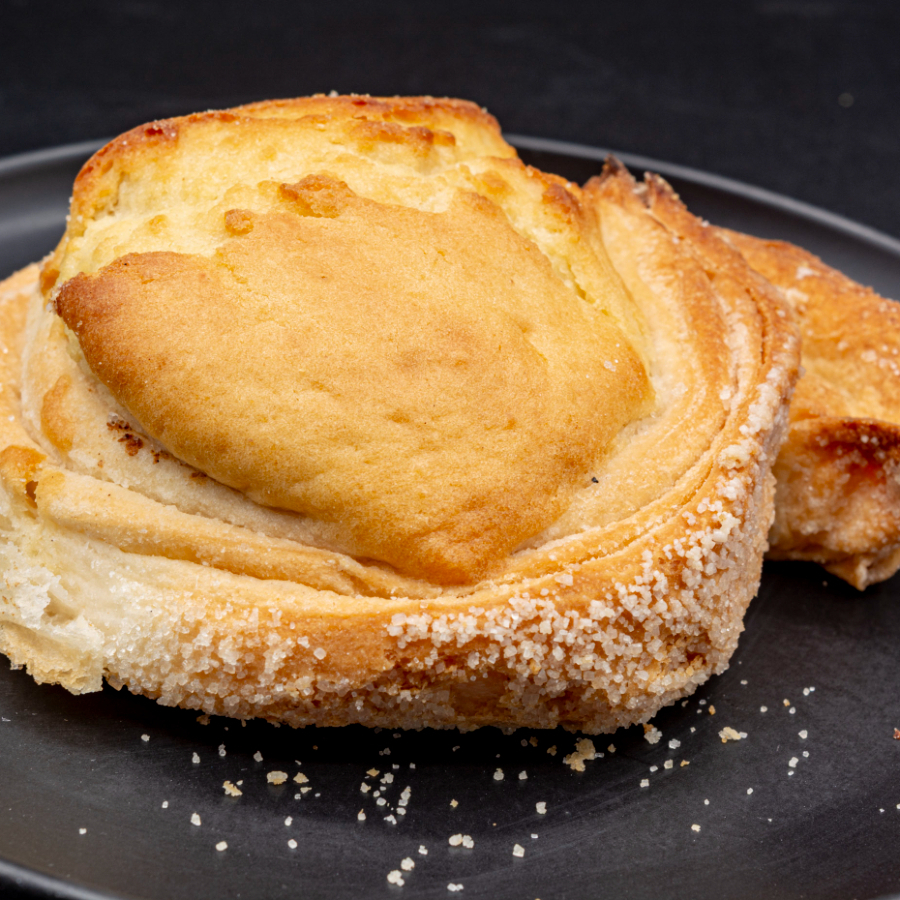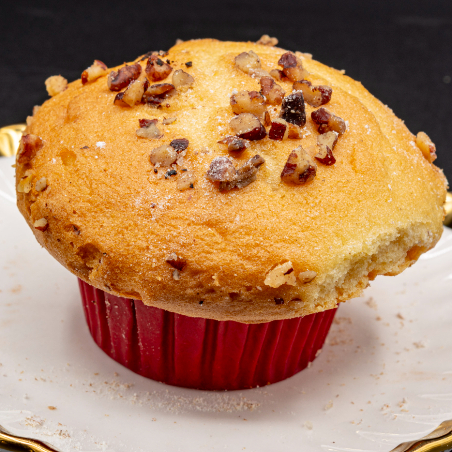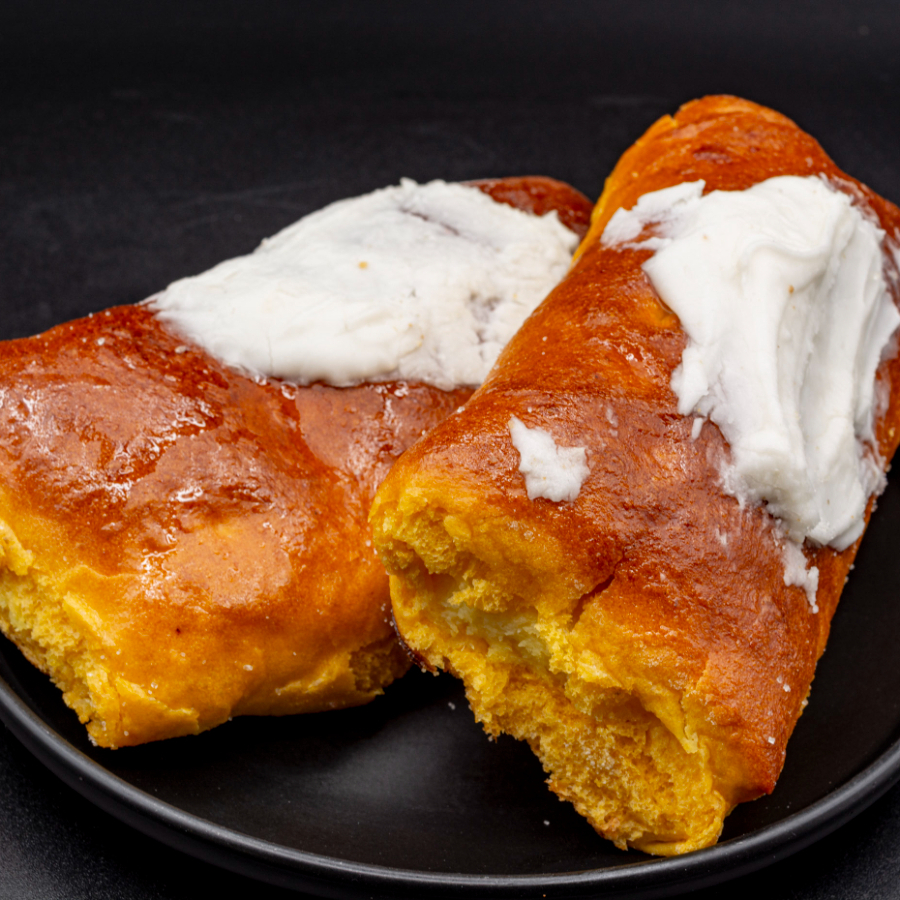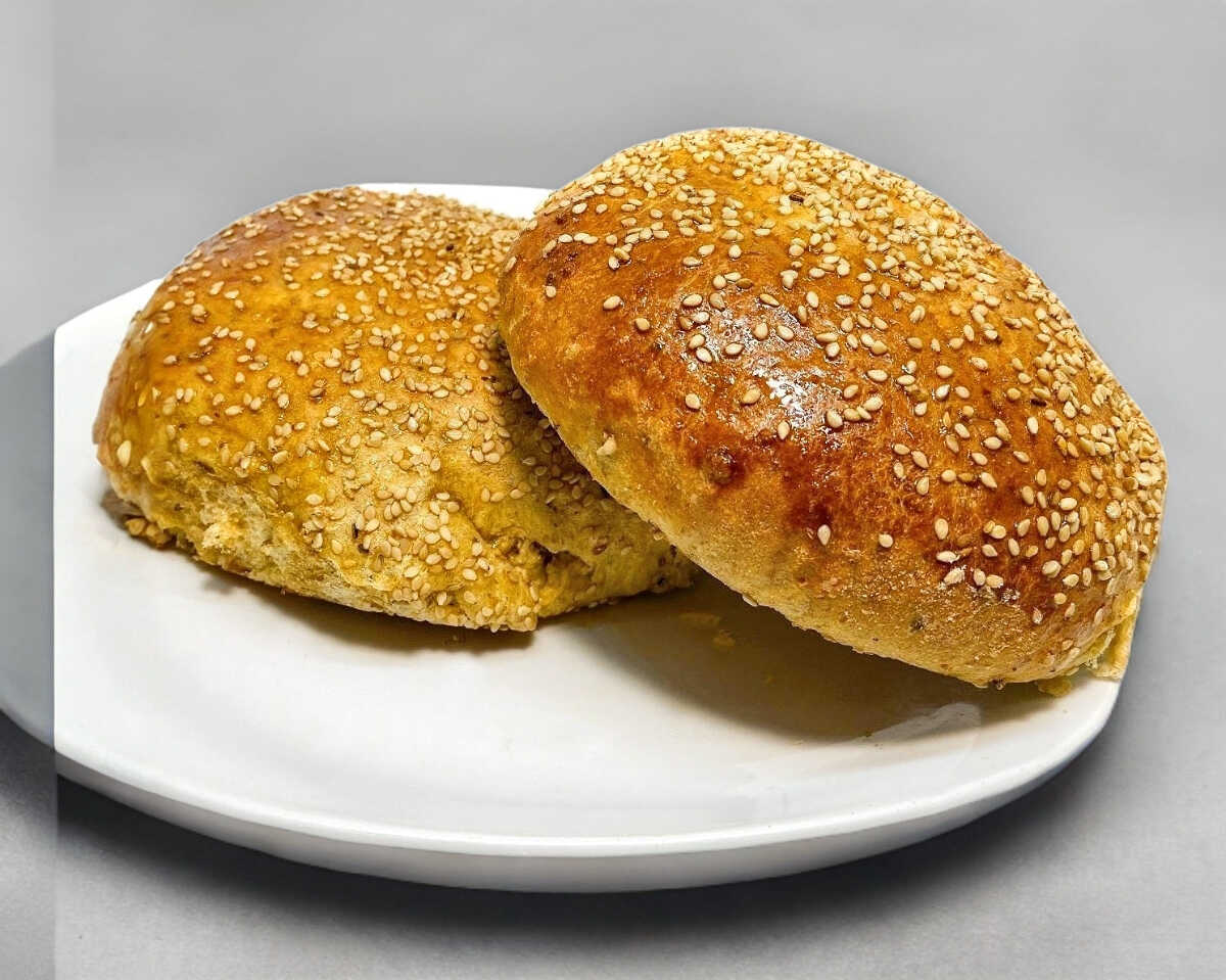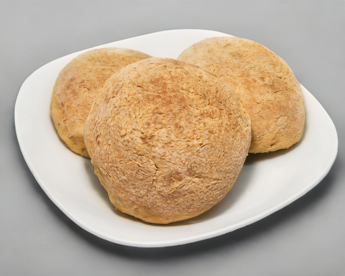 Pan piedra con pasas, nuez, coco y glaseado de chocolate.