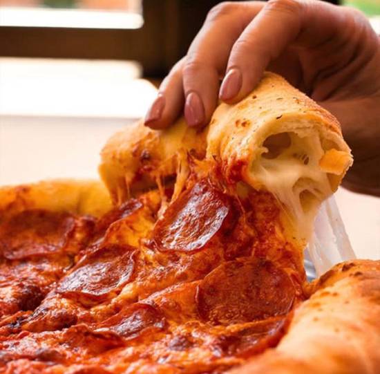 Queso mozzarella, cheddar y provolone, cubierto con peperoni y especias