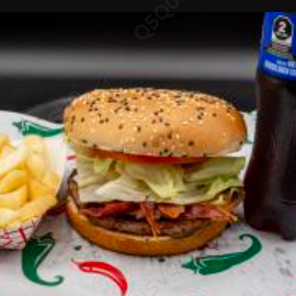 Burger Tocxina (1/4lbn y Tocino )+ Papas+ Refresco