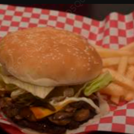 Hamburguesa 1/4 lb. Aderezada con un rico baño de champiñones con gravy.