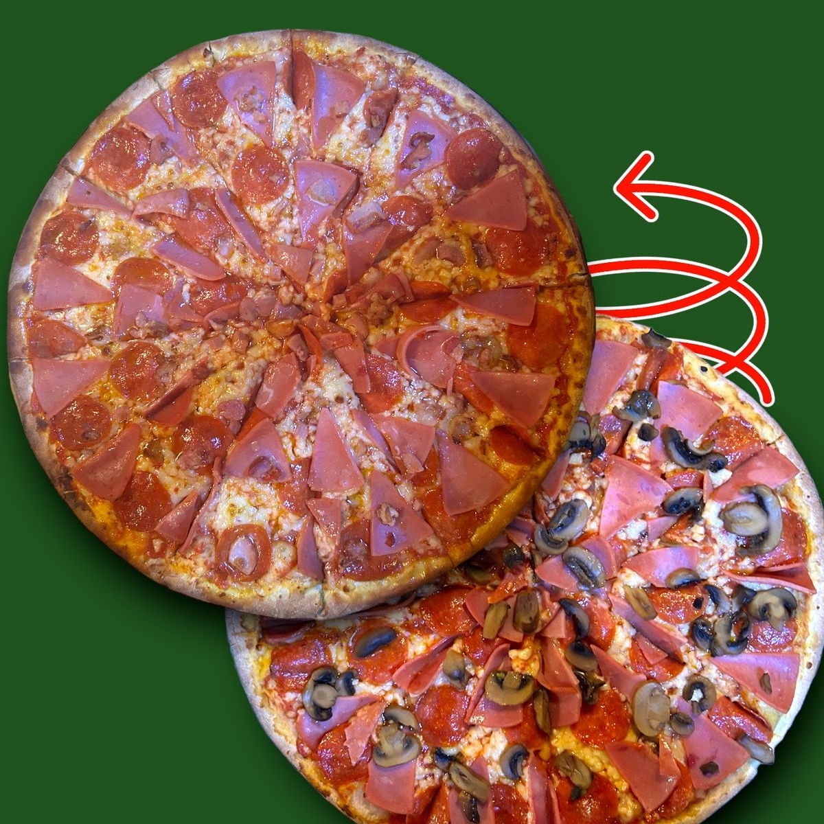 Pizza Grande Dúo (Mitad y mitad) 8 rebanadas