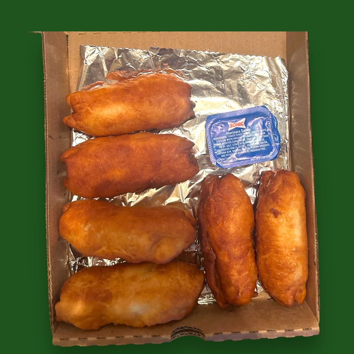 8 rebanada de pizza de peperoni con bordes rellenos de queso fundido