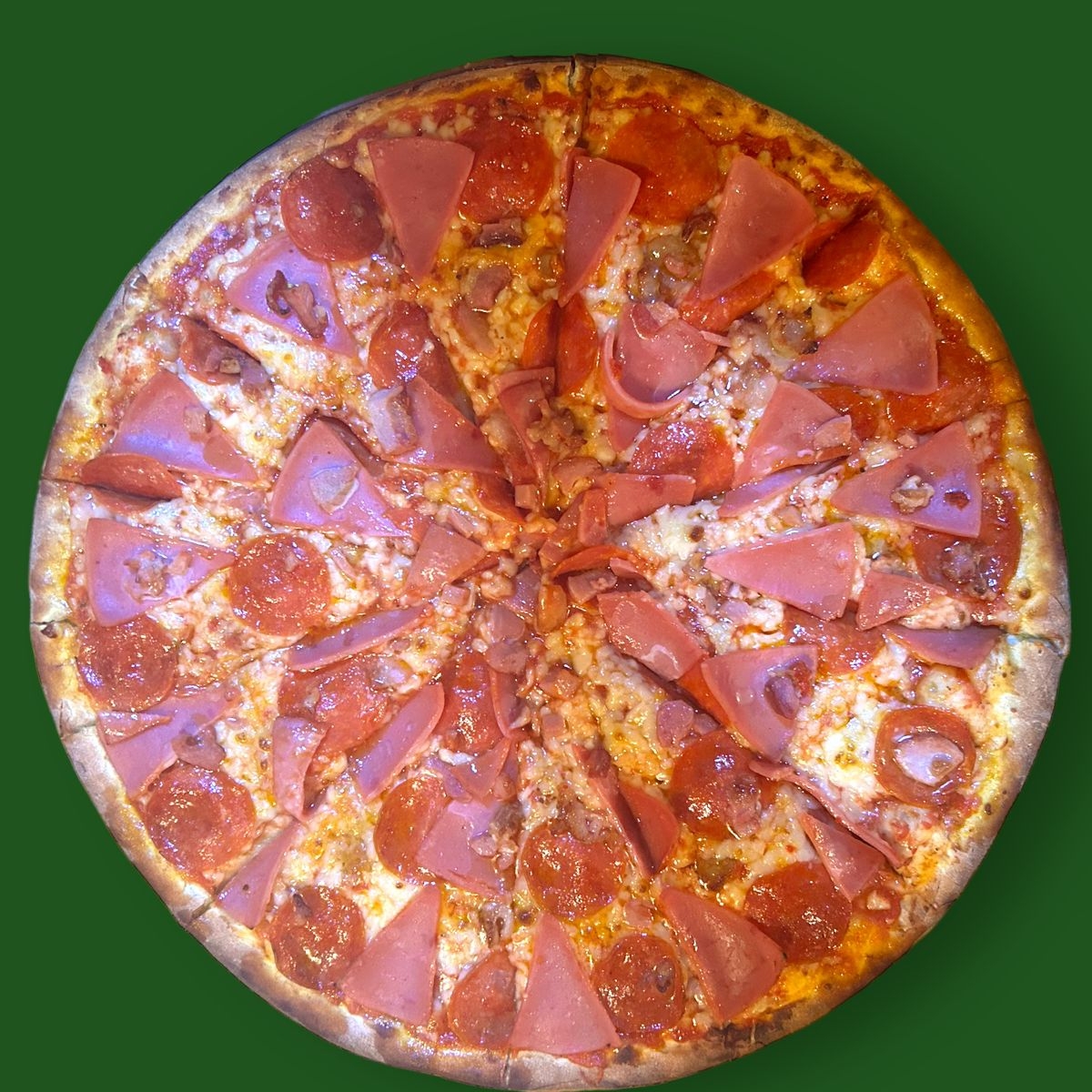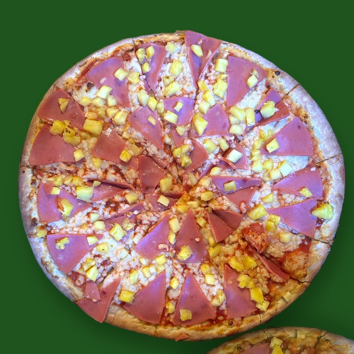 1 Pizza Extragrande hawaiana con 12 rebanadas con jamon, queso y piña
