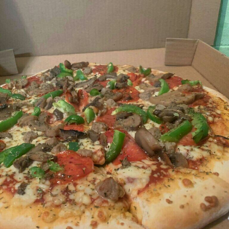 Peperoni, carne, champiñones y pimiento verde