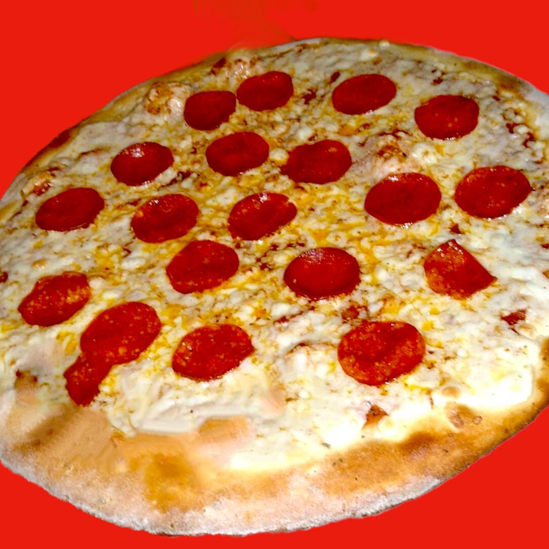 Mediana con peperoni, jamón, tocino, chorizo y carne