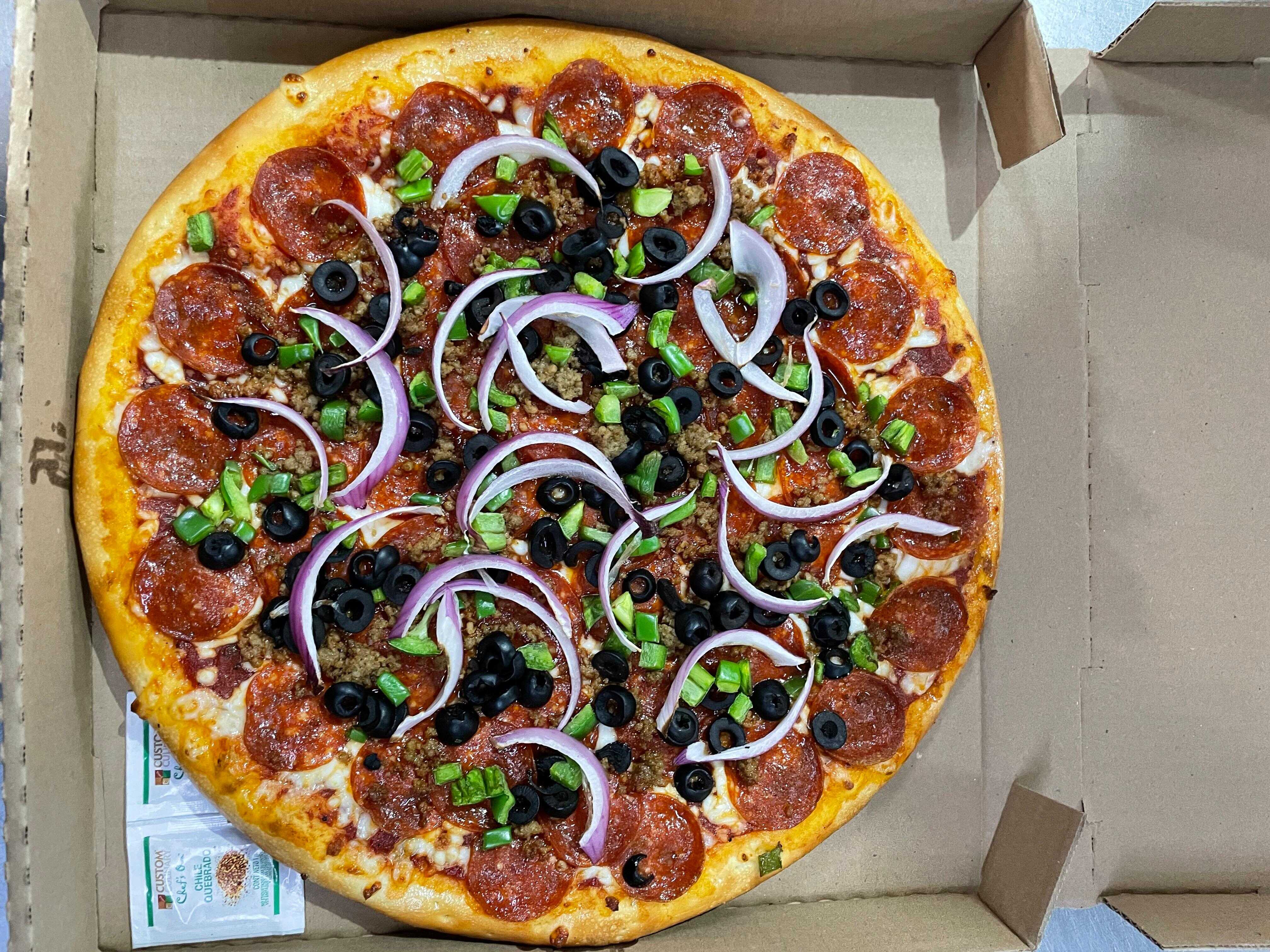 1 Pizza Grande c/3 ingrediente y orilla de queso.