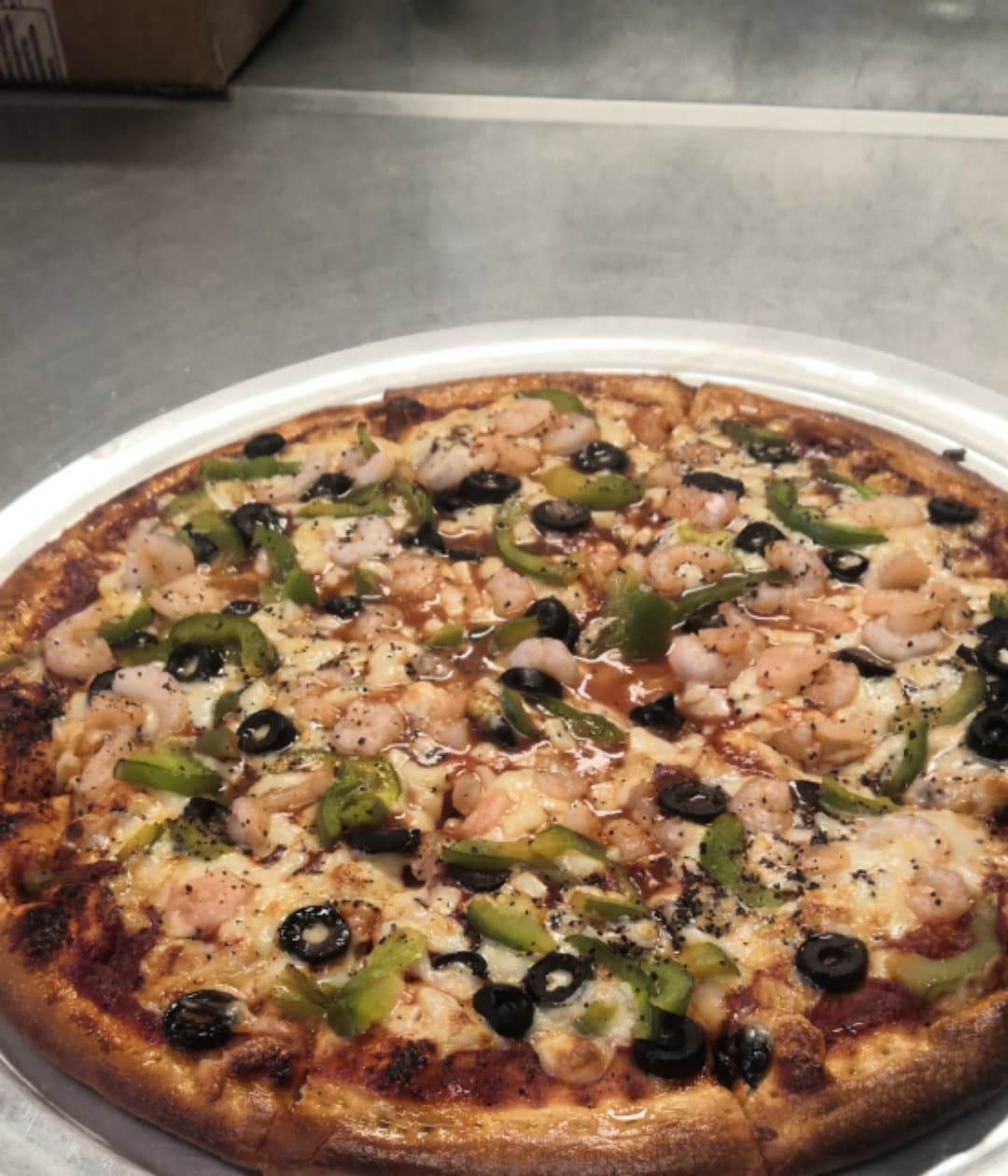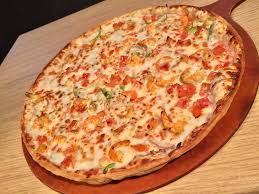 PIZZA EXTRA GRANDE CON CHAMPIÑONES ACEITUNA Y MORRON