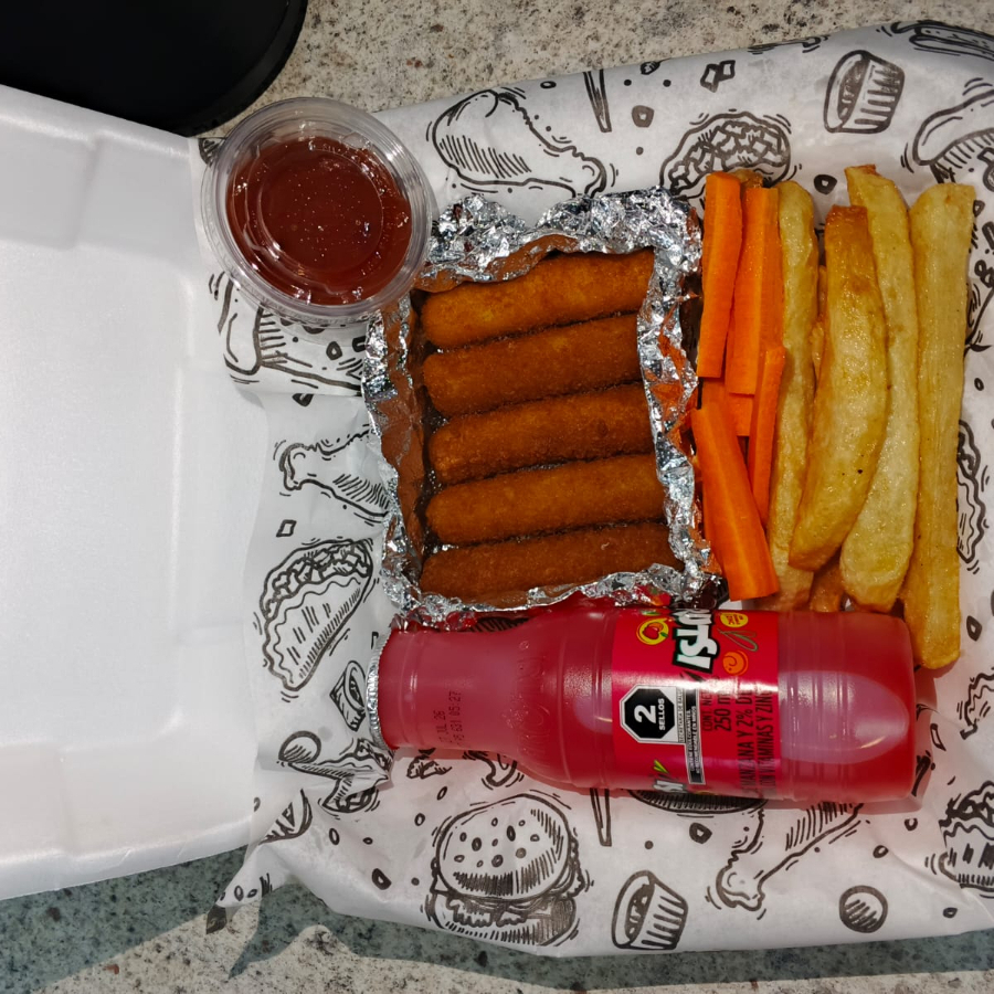 dedos de que con papas un jugo y verdura