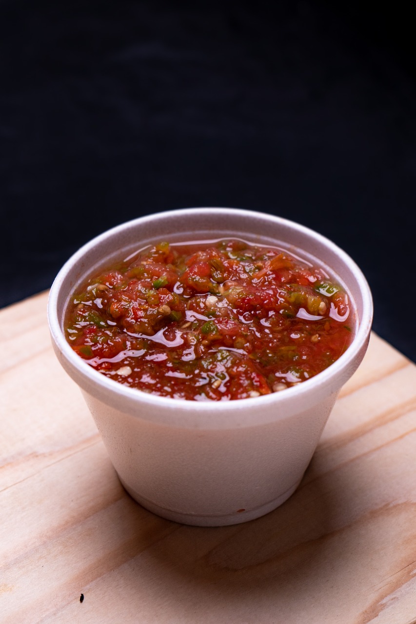 Salsa preparada a base de 4 chiles (6oz.) Pidela aparte o tu pollo bañado