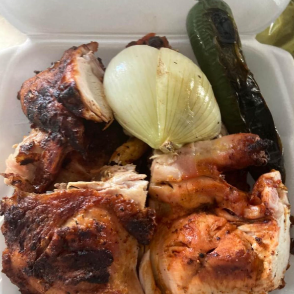 1 pollo Enchilado, 1 paquete de tortillas y 1 cebolla Asada