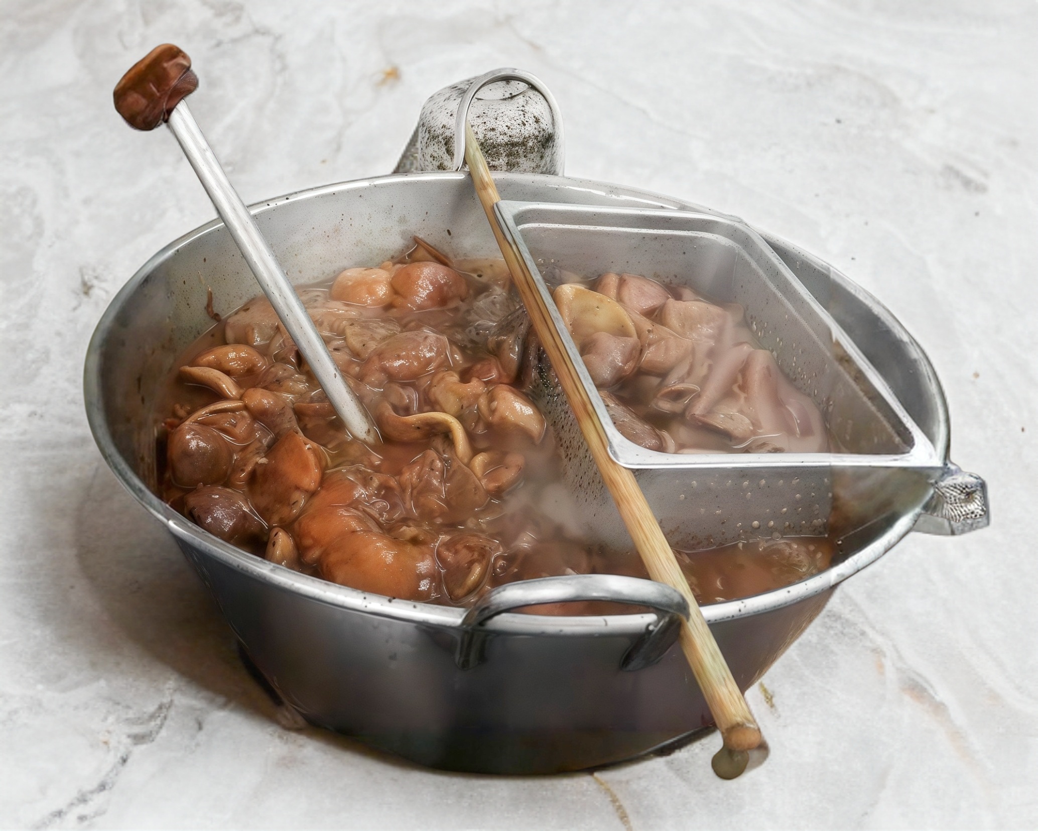 un litro de birria, cebolla con cilantro, limon, tortillas, salsa roja,