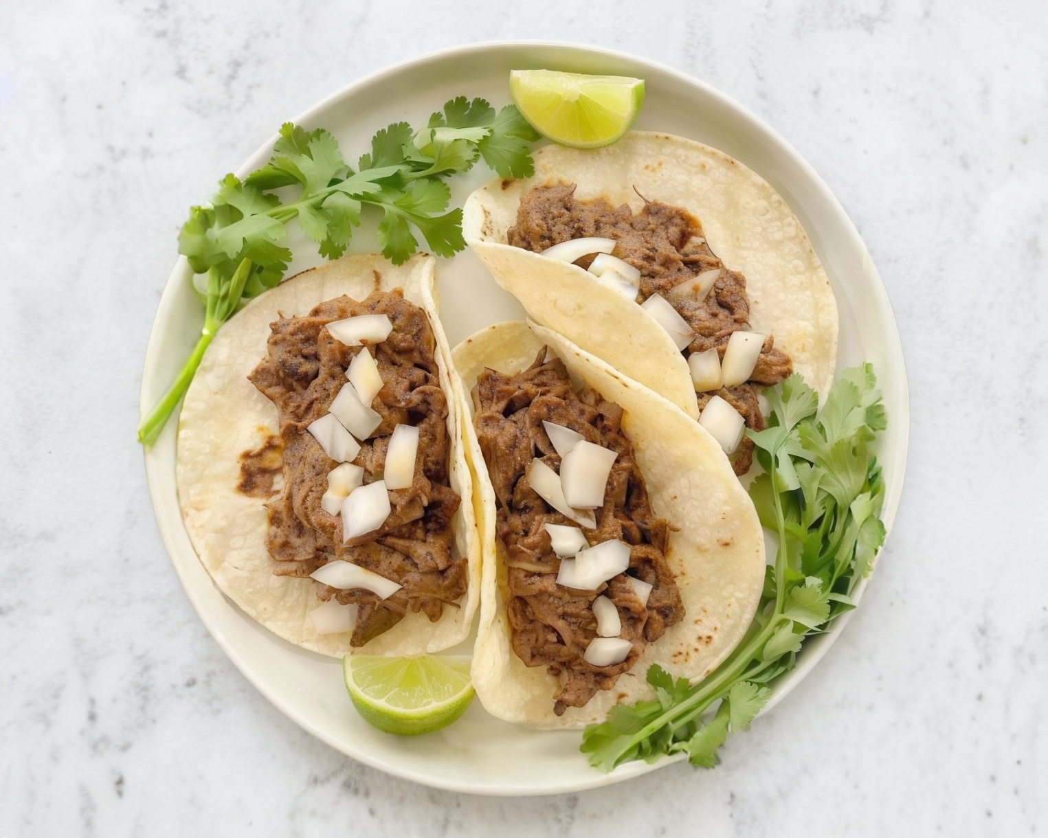 BARBACOA, SALSA DEL DIA, CEBOLLA CON CILANTRO, TORTILLAS, LIMON