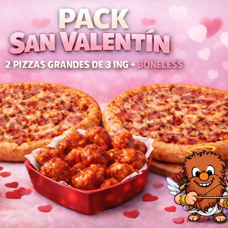 2 pizzas grandes de 3 ingredientes más unos deliciosos boneless