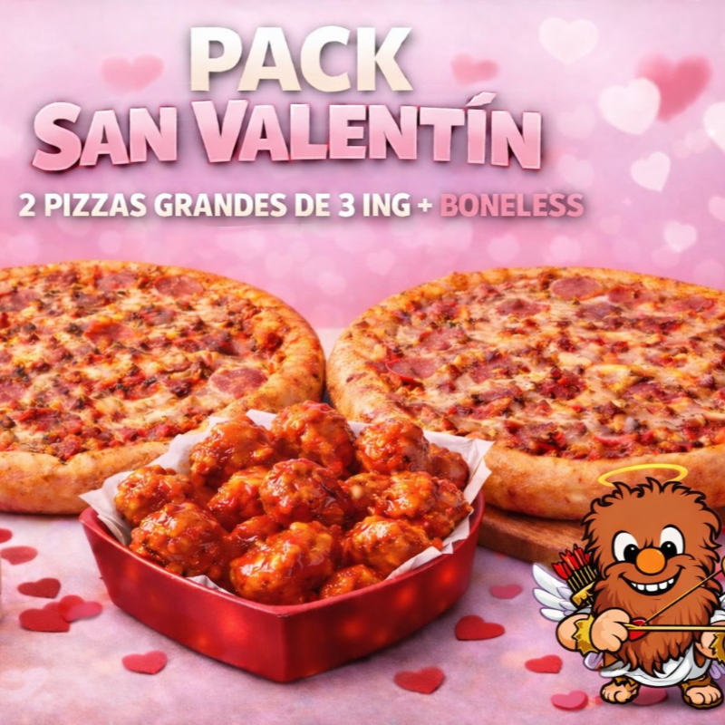 2 pizzas grandes de 3 ingredientes mas unos deliciosos boneless