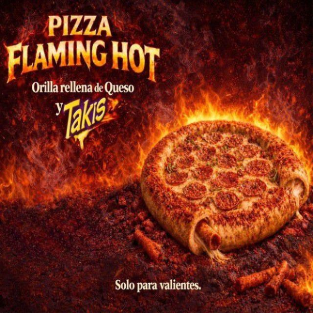 PIZZA FLAMING HOT ORILLA DE QUESO Y TAQUIS