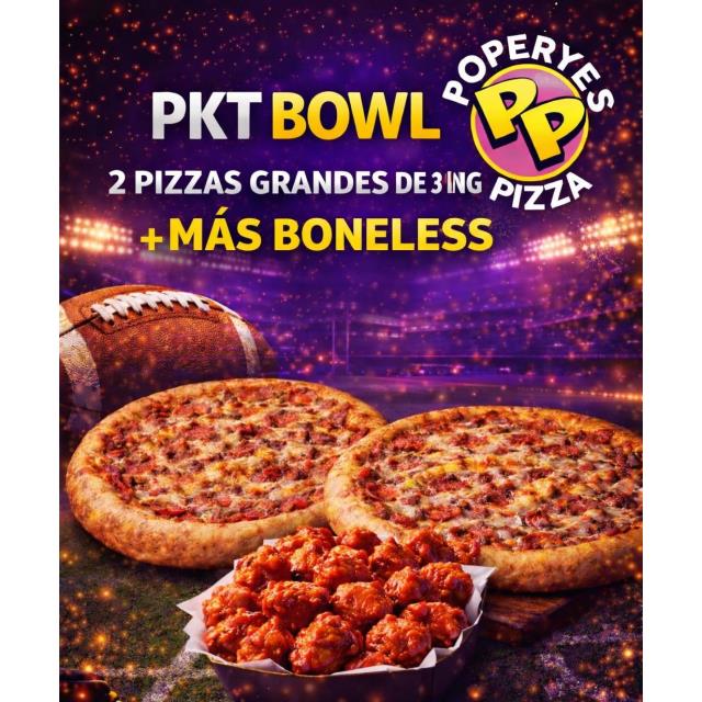 PKT BOWL: 2 PIZZAS GRANDES C/3 ING + 1 ORDEN BONELESS