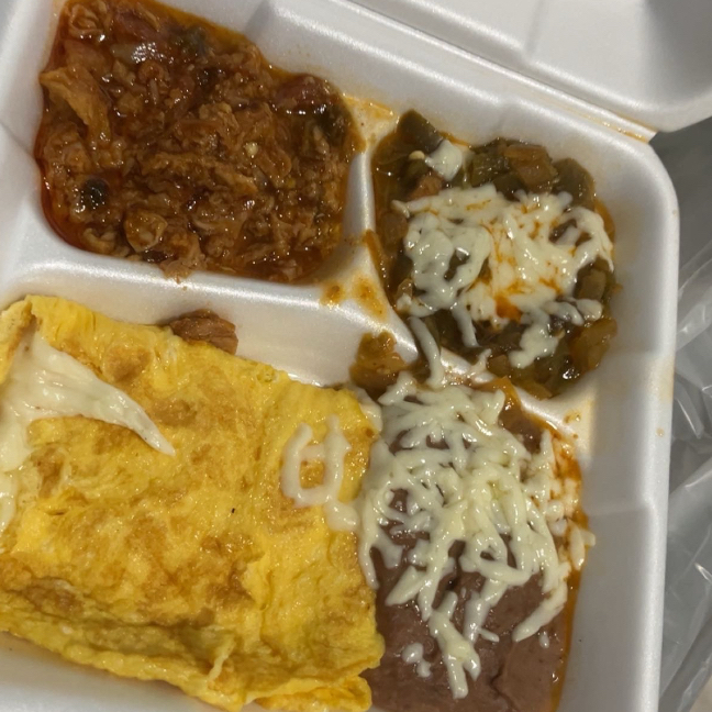 Huevos al gusto ,2 guisados a elegir y frijoles con queso