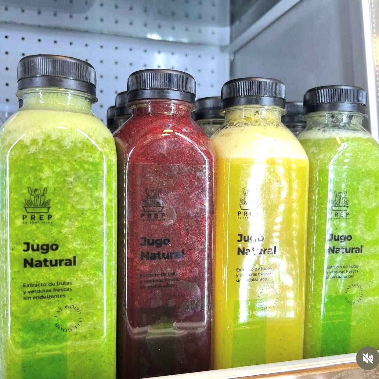 Jugo a base de jugo de naranja natural, espinaca, apio, nopal, pepino, limón, jengibre, y miel. (Dulzor puede variar por la madurez de la fruta o la temporada).