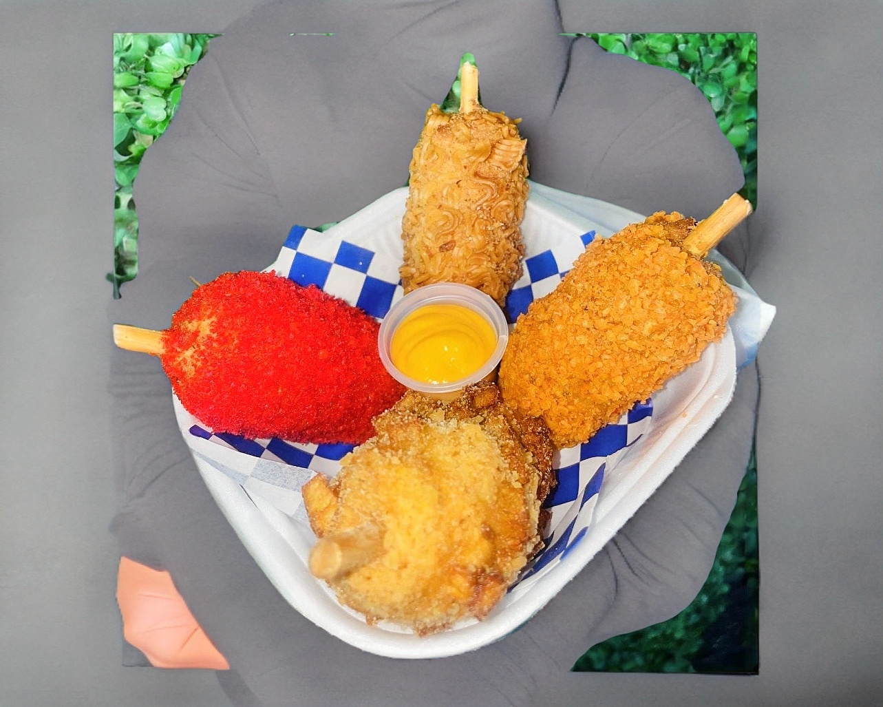 1 Banderilla con salchicha de pavo, cubierta de ramen