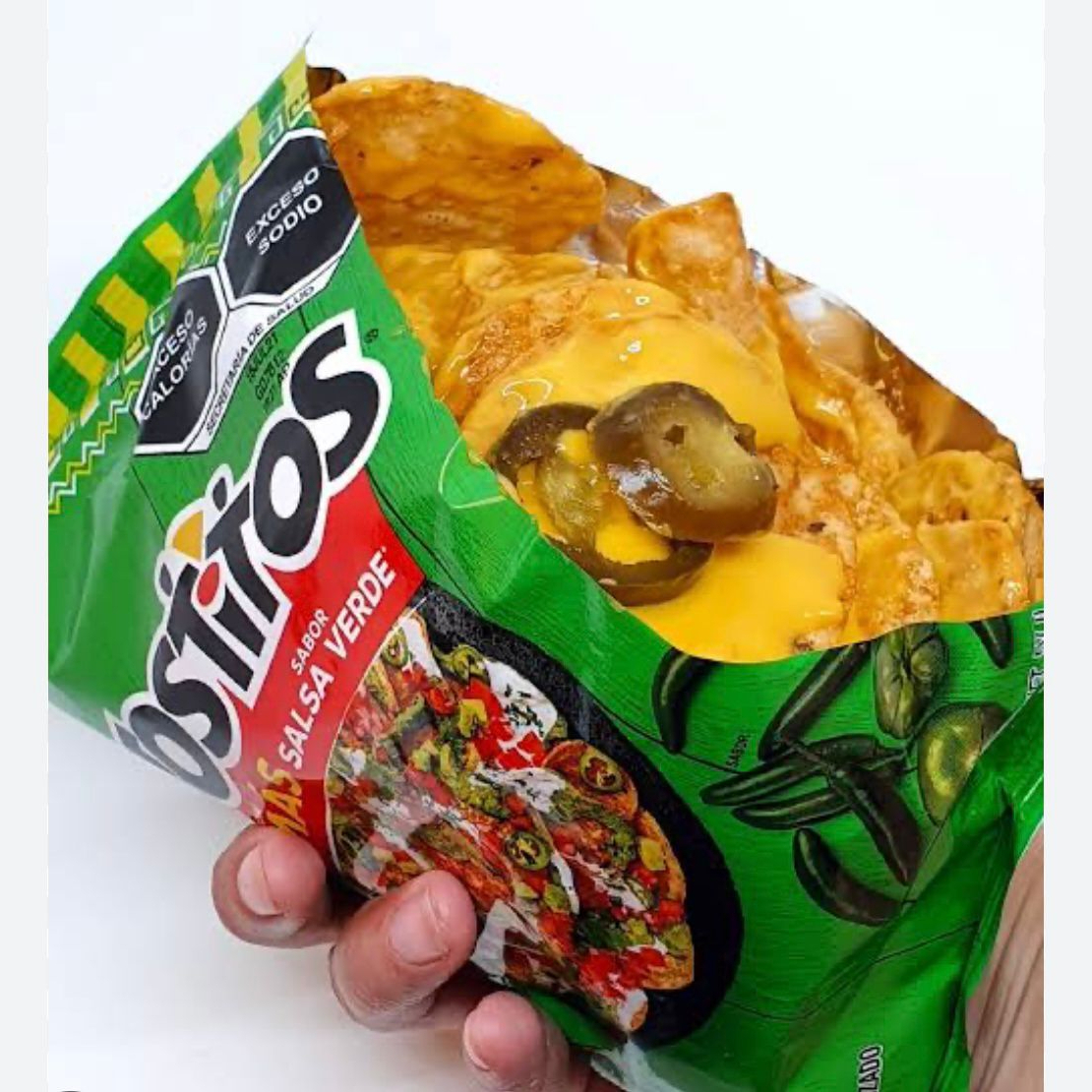 Tostitos verdes con queso, frijoles y jalapeños curtidos