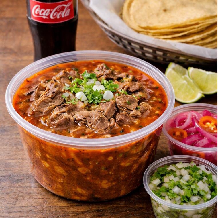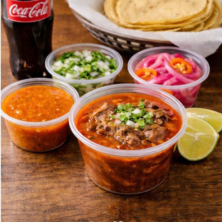 Medio Litro de Birria + Refresco Lata + Tortillas