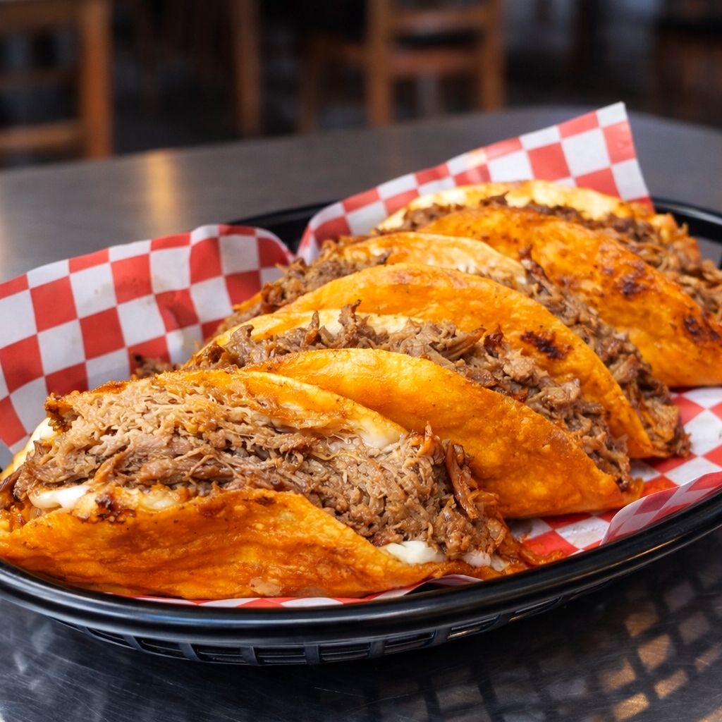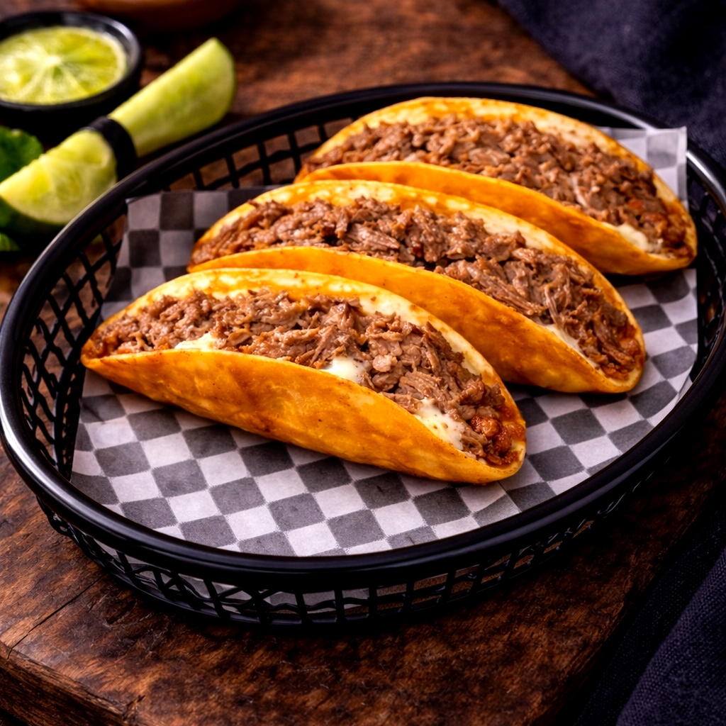 Media Orden 3 Tacos Dorados de Birria C/Refresco