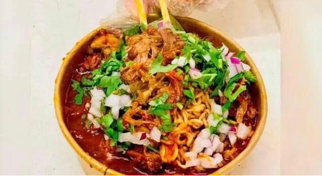 Rica pasta de ramen picosita, con carne de birria y consomé