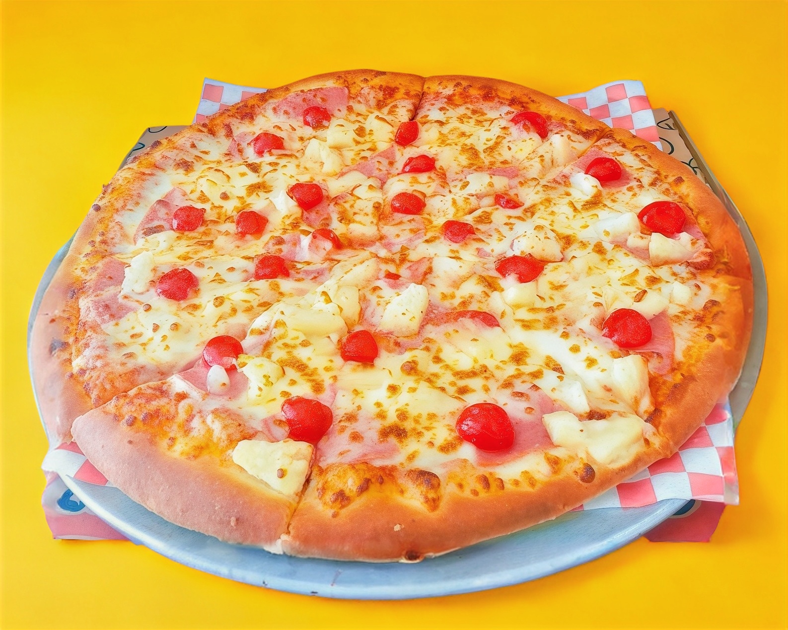 Pizza grande 14" con Jamon Piña, Extra Queso y Crezas