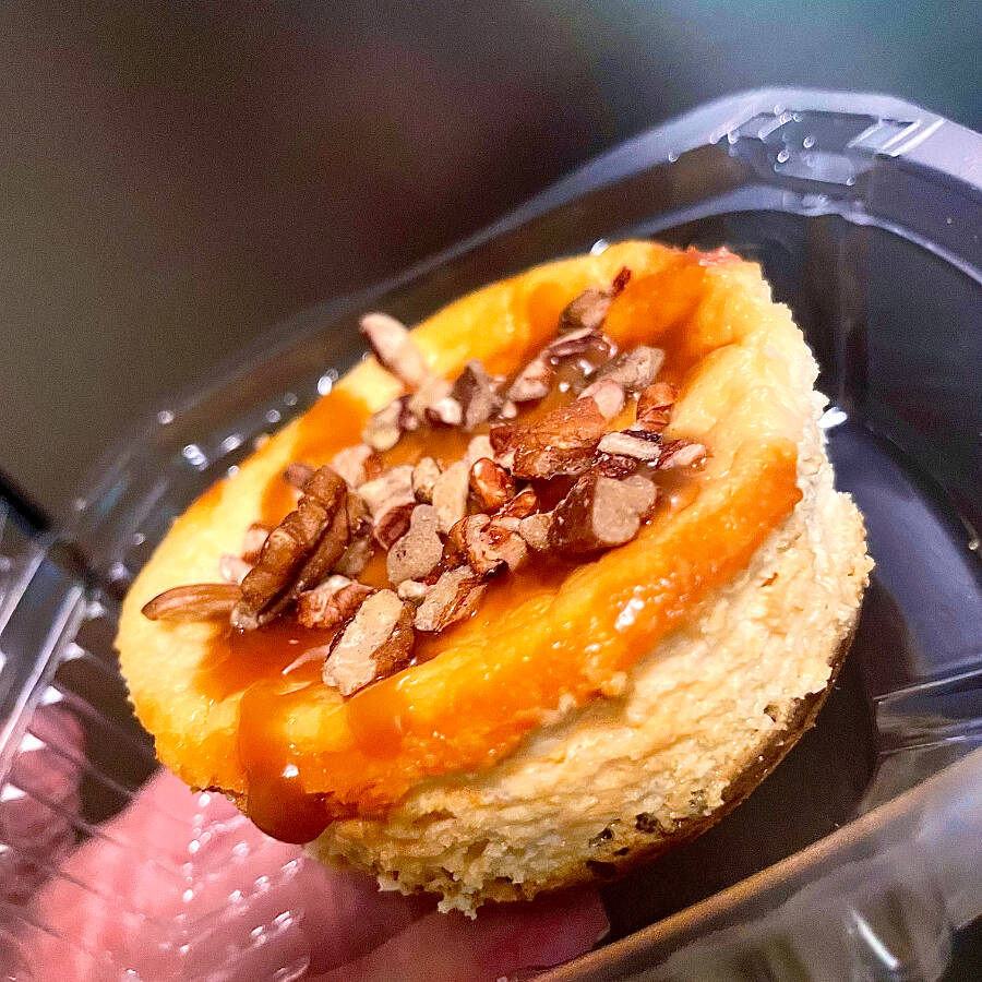 Elaborado con yogurt griego huevo vainilla endulzada con alulosa y encima lleva caramelo de alulosa con nuez