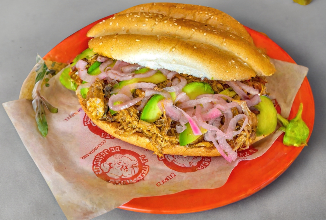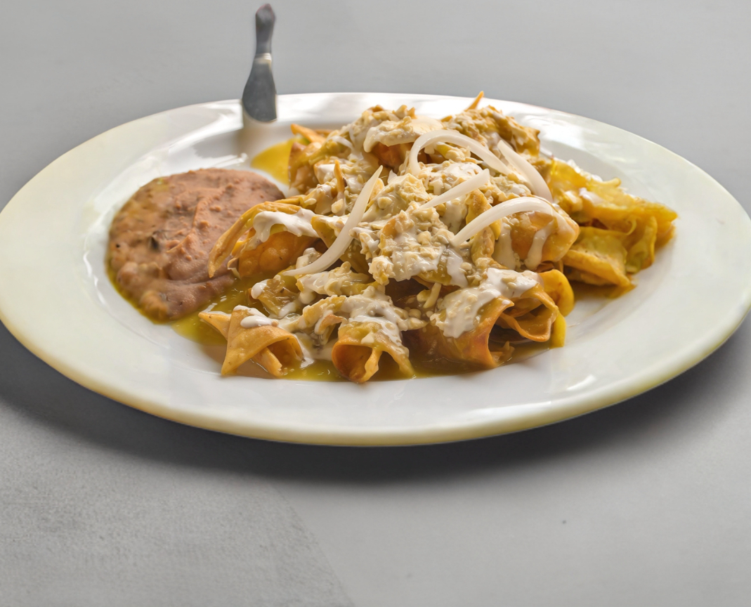 Rica tortilla Oaxaqueña con Queso, frijoles, chorizo, lechugay aciento de Chicarron.