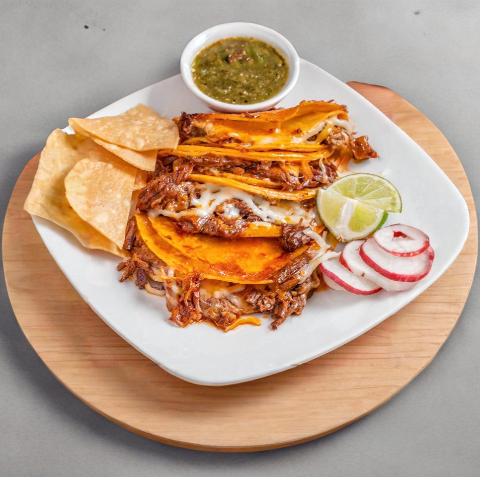 Deliciosa quesabiiria con tortilla de Harina y sus complementos