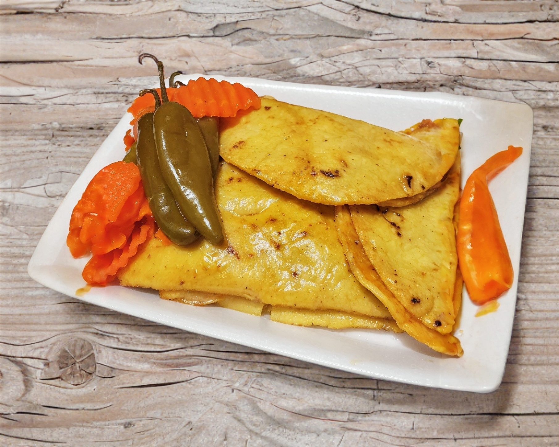 (Frijol, picadillo, colorado, chicharrón y chile con queso)