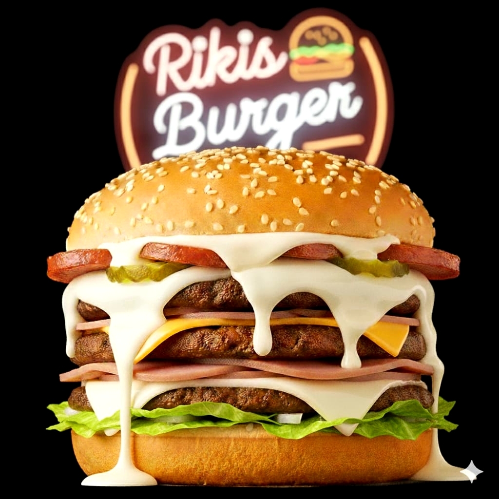 2 carnes cuadradas de sirloin,wini,jamon,aguacate,queso amarillo,verduras y liquidos