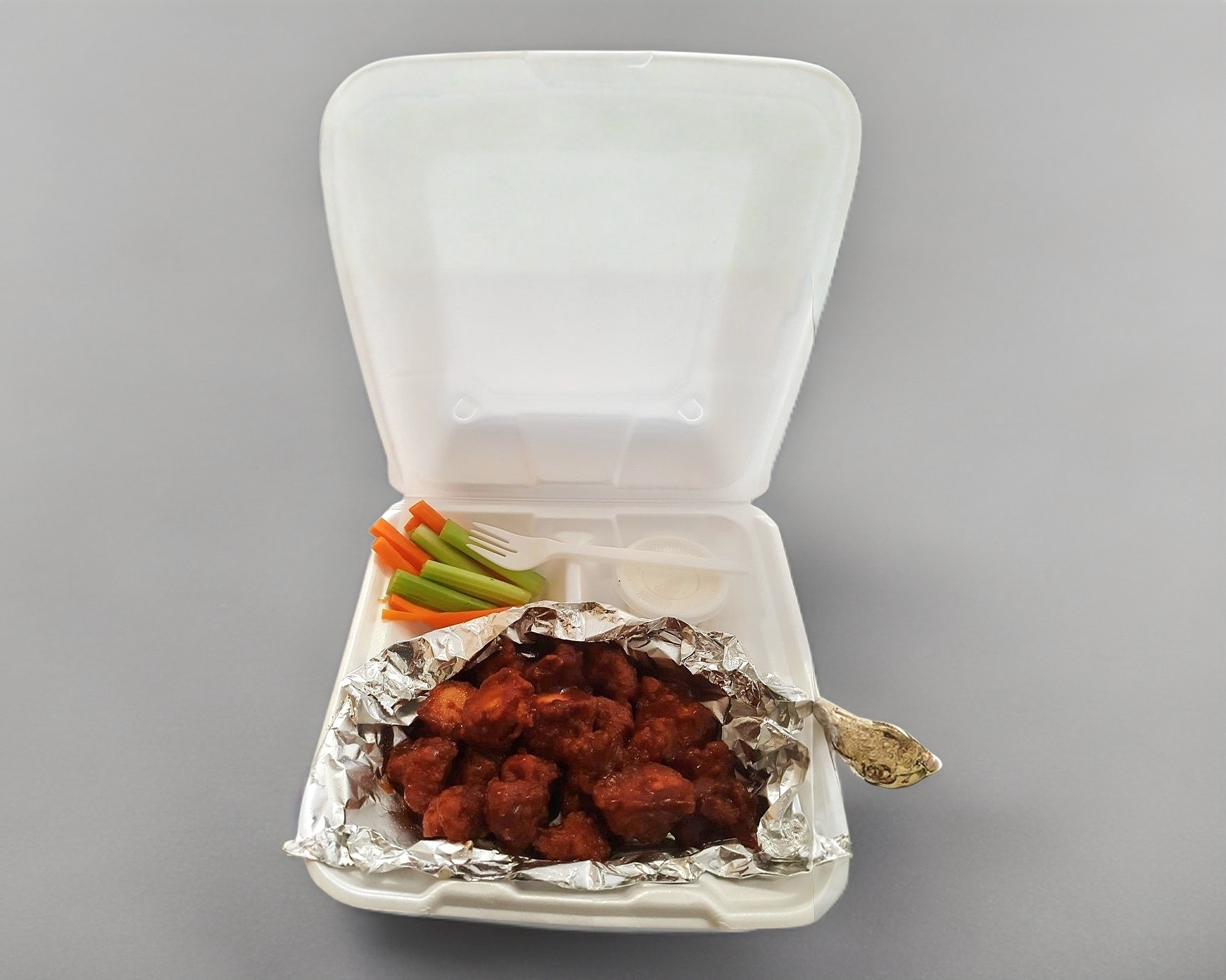 350 GR (PESO EN CRUDO) COMPLEMENTADO CON BASTONES DE APIO, ZANAHORA Y UN VASITO RANCH DE 2 OZ