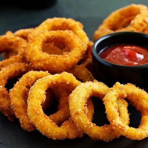 Deliciosos aros crujientes de cebolla 7pz , acompañados con catsup